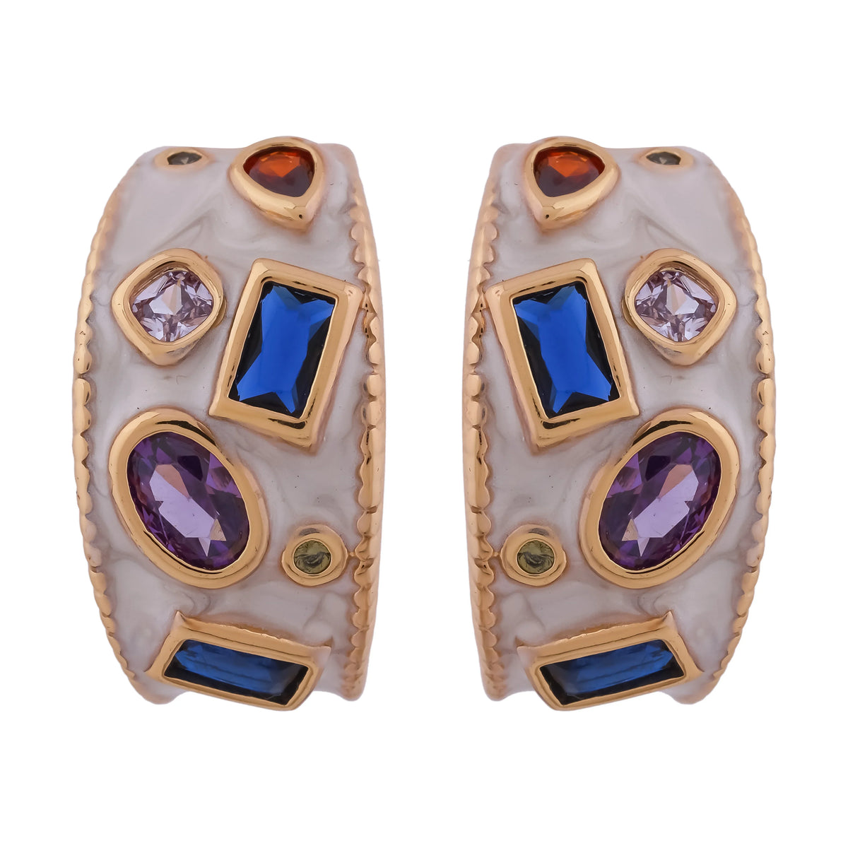 These unique enamel hoops are adorned with colorful gemstones in various shapes and sizes, giving them a luxurious and artistic appeal. With their bold yet classy design, they are a standout piece for parties, dinners, or festive events.