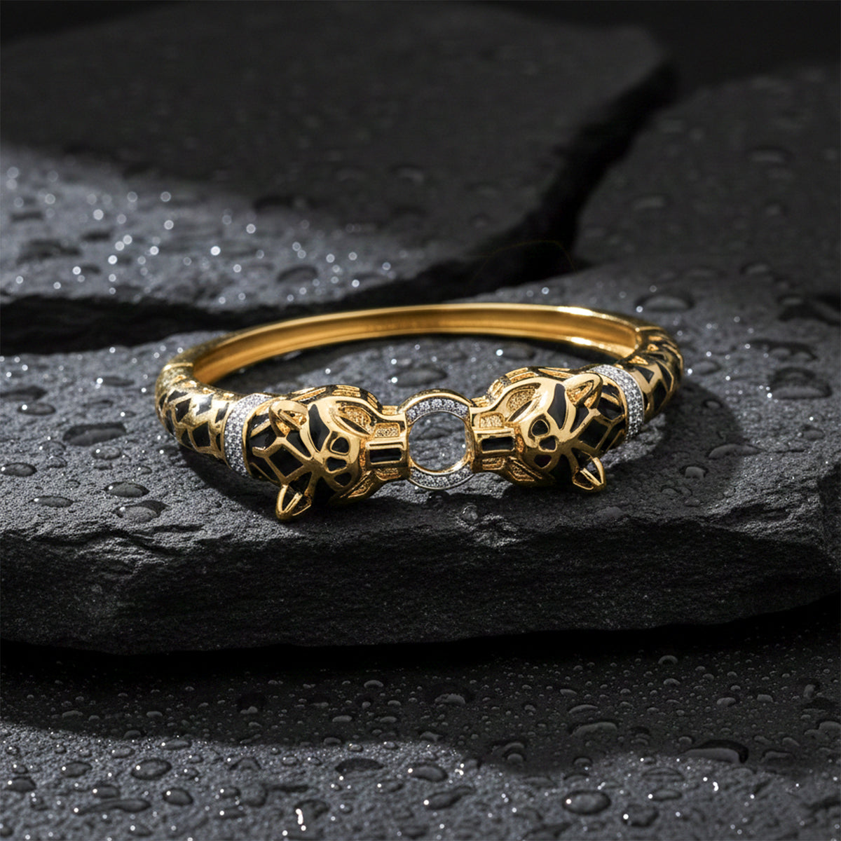 Luxury Twin Panther Dual-Tone Men’s Kada Bracelet