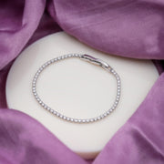This is a classic and brilliant Silver-Toned Tennis Bracelet featuring a continuous, flexible line of uniformly sized, clear round crystals. The design is secured by a reliable, integrated box clasp for a seamless, elegant finish.