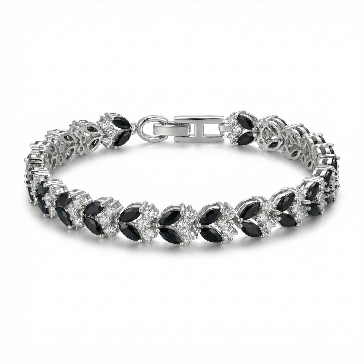 The unique marquise arrangement creates a refined, modern look while maintaining the classic tennis bracelet appeal. Each stone is expertly set for durability, comfort, and lasting brilliance. A secure clasp ensures confident wear, making this bracelet ideal for both special occasions and elegant everyday styling.