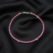 The classic tennis bracelet design offers timeless sophistication while the vivid pink stones bring a modern and feminine charm. Its delicate sparkle makes it perfect for both everyday elegance and special occasions.